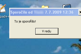 ... in zaženite datoteko. Prikazalo se vam bo sistemsko sporočilo z besedilom, ki smo ga malce prej vpisalo za ukaz msg *, ki ukaže sistemu, da prikaže sporočilo.