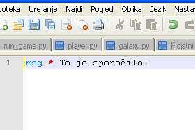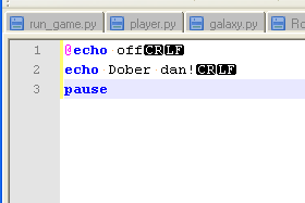 Spet odprite datoteko test.bat v urejevalniku besedila. Sedaj bomo spoznali, kako lahko našemu sistemu ukažemo, da ob zagonu datoteke prikaže sporočilo. Napišemo: