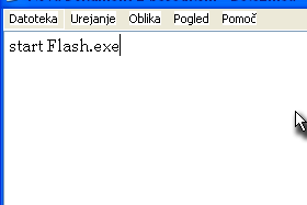 start Flash.exe S tem ste Batch datoteki, ki jo boste ustvarili ukazali, naj zažene program Adobe Flash. Če programa Flash nimate naloženega, lahko namesto Flash.exe napišete nek drug program, npr. mspaint.exe (odpre slikarja), start Firefox.exe (odpre Firefox) ali pa kar start notepad.exe (odpre beležico). Z ukazom start lahko zaženete tudi spletne strani in datoteke. Npr.: start http://www.zmaga.com (odpre našo spletno stran) oz. start slika.png (odpre datoteko slika.png) |