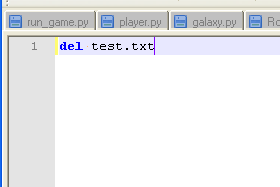 Najprej pobrišite vso kodo od prej ter nato vpišite: del test.txt S to kodo smo izbrisali to datoteko (v mojem primeri test.txt) Ne pozabite; s tem ukazom lahko izbrišete samo datoteko, ne pa tudi mape. Namesto ukaza del lahko uporabite tudi ukaz erase, ki bo imel enak učinek. |