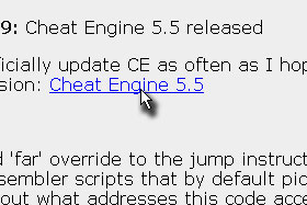 Da prenesete inštalacijsko datoteko, kliknite na Cheat Engine 5.5 povezavo oziroma tako kot prikazuje slika.