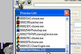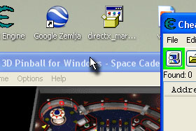 V programu Cheat Engine kliknite na ekran (glej sliko) in izberite Pinball.