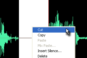 Zdaj se nam bo ta del glasbene datoteke popolnoma izbrisal in med izvajanjem ga ne bomo več zaznali. Izberemo lahko tudi Cut in s tem izrežemo ta del. |