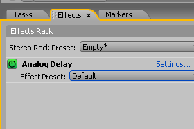 Sedaj bomo pa spoznali najvznemerljivejši del, kako glasbi dodati efekte. Kliknite za začetek na Effects > Analog Delay.