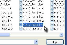 Jaz sem izbral datoteko 4_4_0_Part3_|_4.wav, ki jo lahko najdete v mapi Adobe Soundbooth Scores, v kateri je prikazan ustvarjen projekt za zgled. |