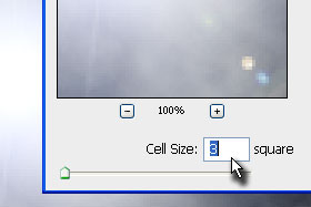 Pojdite pod Filter > Pixelate > Mosaic in nastavite Cell Size na 3.