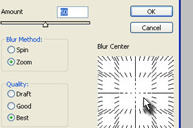 Pojdite pod Filter > Blur > Radial Blur in uporabite nastavitve, prikazane na sliki.