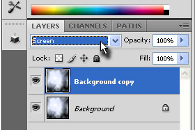 Podvojite Background layer (desni klik, Duplicate Layer ali Ctrl+J), in mu nastavite Blending mode na Screen.