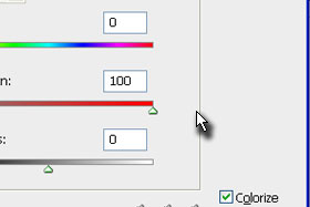 Sedaj izberite Background (prvi od spodaj navzgor) layer. pritisnite tipki Ctrl+U in ponovno uporabite nastavitve, prikazane na sliki.