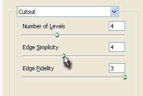 V meniju kliknite Filter, Artistic, Cutout in nastavite nastavitve kot so prikazane na sliki ali po želji.