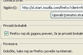 Izberite (oziroma naj ostane izbrano) Firefox naj ob zagonu preveri, če je privzeti brskalnik. |