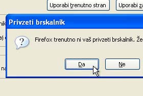 Pojavi se vam novo okno s sporočilom, da Firefox ni privzeti brskalnik.