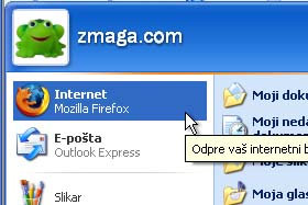 Če kliknete sedaj na gumb Start boste videli, da je sedaj Mozilla Firefox nastavljen kot privzeti brskalnik.