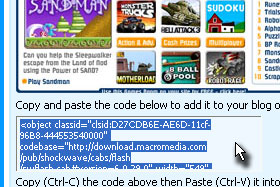 Pri prvi točki lahko na svojo stran dodamo seznam najnovejših in najbolj igranih iger, pri drugi točki, katere kodo bomo uporabili mi, pa lahko dodamo posamezno igro. Zraven sličice in napisa igre bi se vam morala pokazati koda, ki jo prekopirajte v katerikoli urejevalnik kode, besedila.