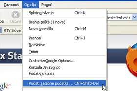 Kliknite na Orodja in izberite Počisti zasebne podatke ... (bližnjica so tipke CTRL + SHIFT + DEL).