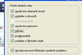 Odpre se vam okno čiščenje zasebnih podatkov.