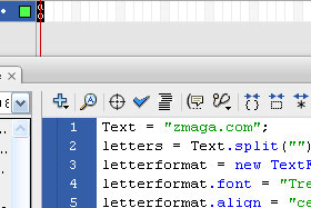 Text = "zmaga.com"; letters = Text.split(""); letterformat = new TextFormat(); letterformat.font = "Trebuchet MS"; letterformat.align = "center"; letterformat.size = "14"; letterformat.color = 0xffffff; letterformat.bold = true; spacing = 6; speed = 4; for (var LTR = 0; LTR<letters.length; LTR++) { mc = _root.createEmptyMovieClip(LTR+"l", LTR); mc.createTextField(letters[LTR]+"t", LTR, LTR*spacing, 10, 20, 20); with (mc[letters[LTR]+"t"]) { text = letters[LTR]; setTextFormat(letterformat); selectable = false; } if (LTR) { mc.prevClip = _root[(LTR-1)+"l"]; mc.onEnterFrame = function() { this._x += (this.prevClip._x-this._x+5)/speed; this._y += (this.prevClip._y-this._y)/speed; }; } else { mc.onEnterFrame = function() { this._x += (_root._xmouse-this._x+10)/speed; this._y += (_root._ymouse-this._y)/speed; }; } } |