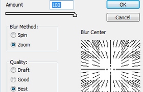 In nastaviš Amount: 100, Blur method: Zoom, Quality: Best in stisnemo OK. |