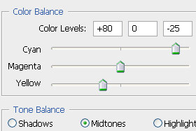 Se pravi: Shadows: [ +80 ] [ 0 ] [ -25 ] Midtones: [ +80 ] [ 0 ] [ -25 ] Highlights: [ +80 ] [ 0 ] [ - 25 ] Kliknite na gumb OK. |