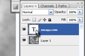 Držite sedaj tipko CTRL in kliknite na predogledno sličico tekstovnega layerja (glej sliko).