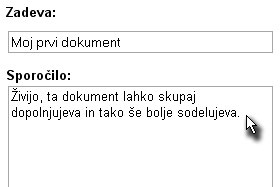 To se prikaže samo takrat, ko obe ali več oseb urejajo isti dokument. Ta funkcija je odlična za vodenje projektov, kjer sodeluje več oseb. |