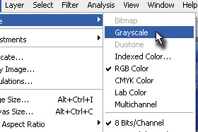 Kliknite zgoraj na Image, Mode in izberite Greyscale.