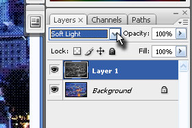 Layerju določite senčenje na Soft Light (glej sliko).