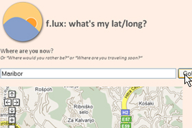 Če napiše napako, da tega mesta ne najde, poskusite vpisati neko bližje, večje mesto. Kopirajte vašo lokacijo in jo prilepite v okence programa f.lux. Klik na OK. |