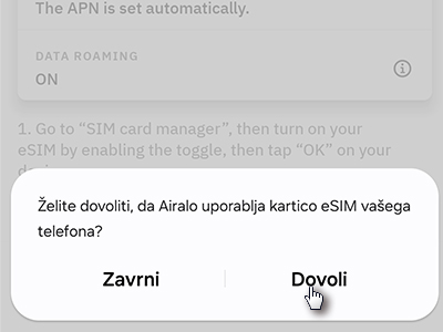 ![]() Ko bo eSIM nameščena, boste prejeli obvestilo. |
