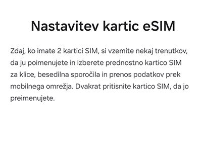 ![]() In prikazalo se vam bo sporčilo o delovanju eSIM. |