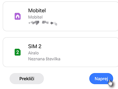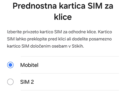 ![]() Sedaj določite prednostno karico za klice. Jaz sem vzel le internet, zato bom pustil Mobitel in se na klice tudi ne oglašal. |