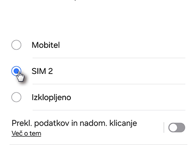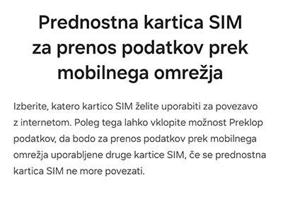 ![]() Določite prednostno SIM kartico za prenos podatkov. |