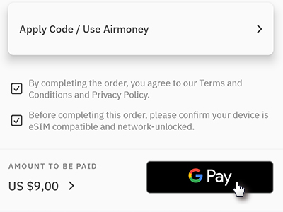![]() Izberite med kreditno kartico, Google Pay ali Apple Pay storitvjo. |