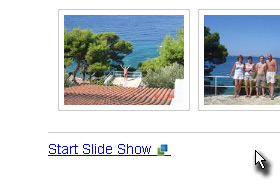 Galerije lahko predvajata tudi v načinu »Silde Show«, vendar samo, če ima vaš spletni brskalnik dodatek, ki postavi slike na nekakšen 3D zid.