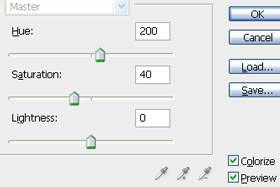 Potem pa nastavite Hue na 200 in Saturation na 40. Kliknite na gumb OK. |
