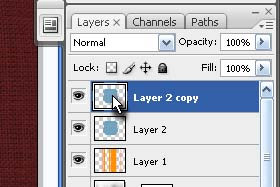 Potem pa ta dupliciran layer premaknite na vrh palete layerjev (glej sliko). |