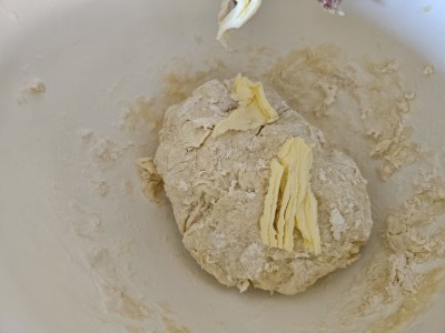 Potem pa dodajte 30 gramov lističev masla, ki ste ga prej pustili na sobni temperaturi. |