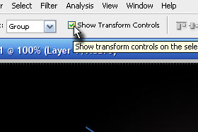 ![]() Nato pa zgoraj v orodni vrstici označite Show Transform Controls. |