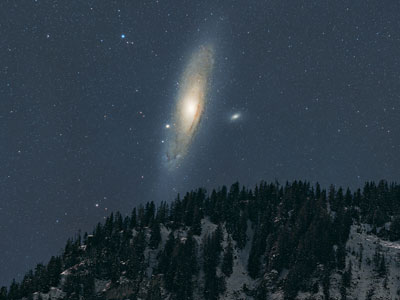 Ena najbližjih galaksij, ki jo lahko vidimo s prostim očesom na jasnem nebu in je oddaljena 2.5 milijona svetlobnih let?