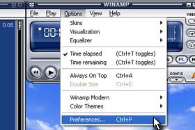 Odprite Winamp in kliknite na Options in zberite Preferences (bližnjica sta tipki CTRL + P).