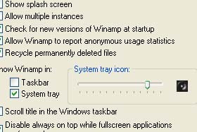 Ta opcija vam bo program Winamp skrila v System tray (poleg ure) in tako omogočila drugim programom več prostora v opravilni vrstici. |
