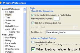 Na desni strani izberite podstran Playlist in potem odkljukajte When loading multiple files, sort files by name.