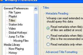 Na desni strani sedaj izberite podstran Titles in odkljukajte prvo opcijo (Read meta data when file(s) are loaded into Winamp (can be slow......).