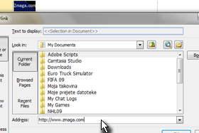 Ko spustimo levi miškin gumb se nam avtomatsko odpre okno s hiperpovezavo. Vpišemo naslov tako kot v koraku 3. Upam da vam je lekcija pomagala. Več pa na forumu. |