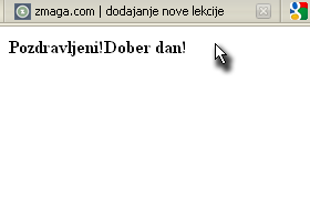 Javascript smo vstavili v značko BODY. Dogodek onload se izvede, ko se stran naloži.