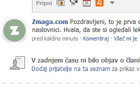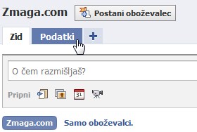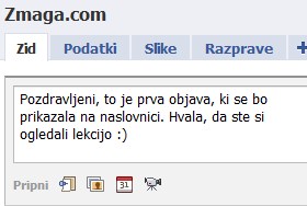 V spodnje okence vpišite poljubno besedilo, ki se bo vsem fanom prikazalo na prvi strani.