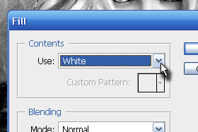 V novem oknu Use preko izbirnika določite White in kliknite na gumb OK. Potem pritisnite tipki CTRL + D, da pobrišete selekcijo. |