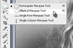 Držite z miško na orodju Rectangluar Marquee Tool (bližnjica je tipka M) toliko časa, da se prikažejo ostala orodja. |
