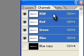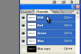 ![]() Kliknite na zavihku Channels na kanal RGB. |
