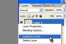 ![]() Označite Layer 1, kliknite na njega z desnim miškinim gumbom in izberite Duplicate Layer... |